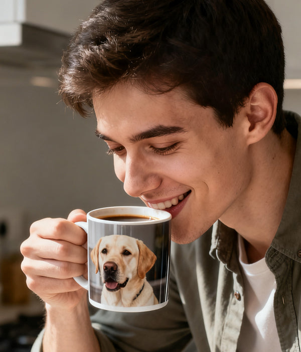 "Got a set of mugs with all three of my dogs on them. The colors are so vibrant and the image is crystal clear. They arrived perfectly packaged and are now our favorite cups for morning coffee."